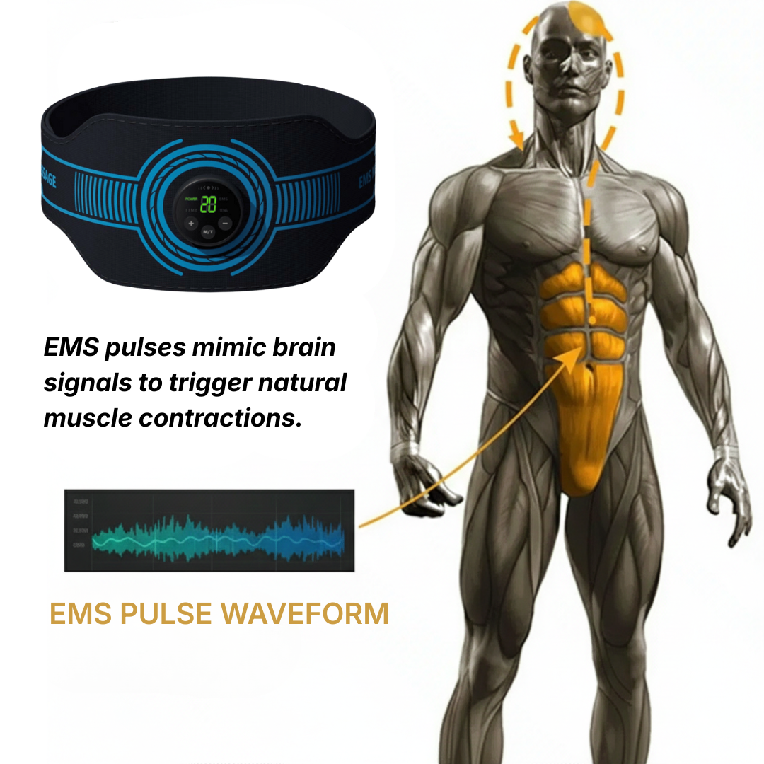 Our Abs Stimulator Belt uses EMS technology to activate abdominal muscles directly, helping engage deeper muscle fibers and support more effective muscle toning compared to traditional exercise alone.